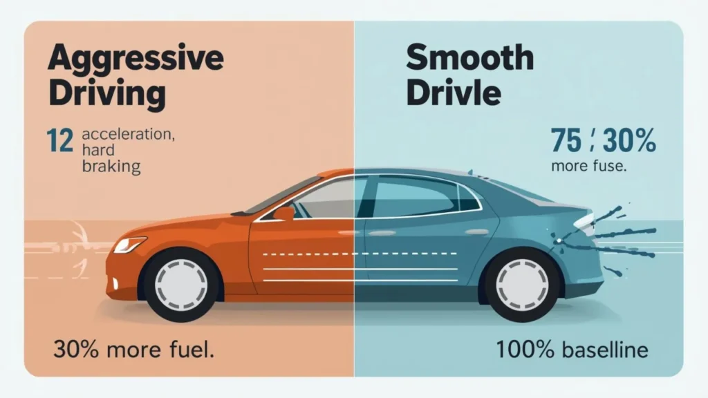 Why it matters: Aggressive driving can reduce fuel economy by 15–30% on highways and 10–40% in stop-and-go traffic. Those rapid dashes between signals cost you dearly.
